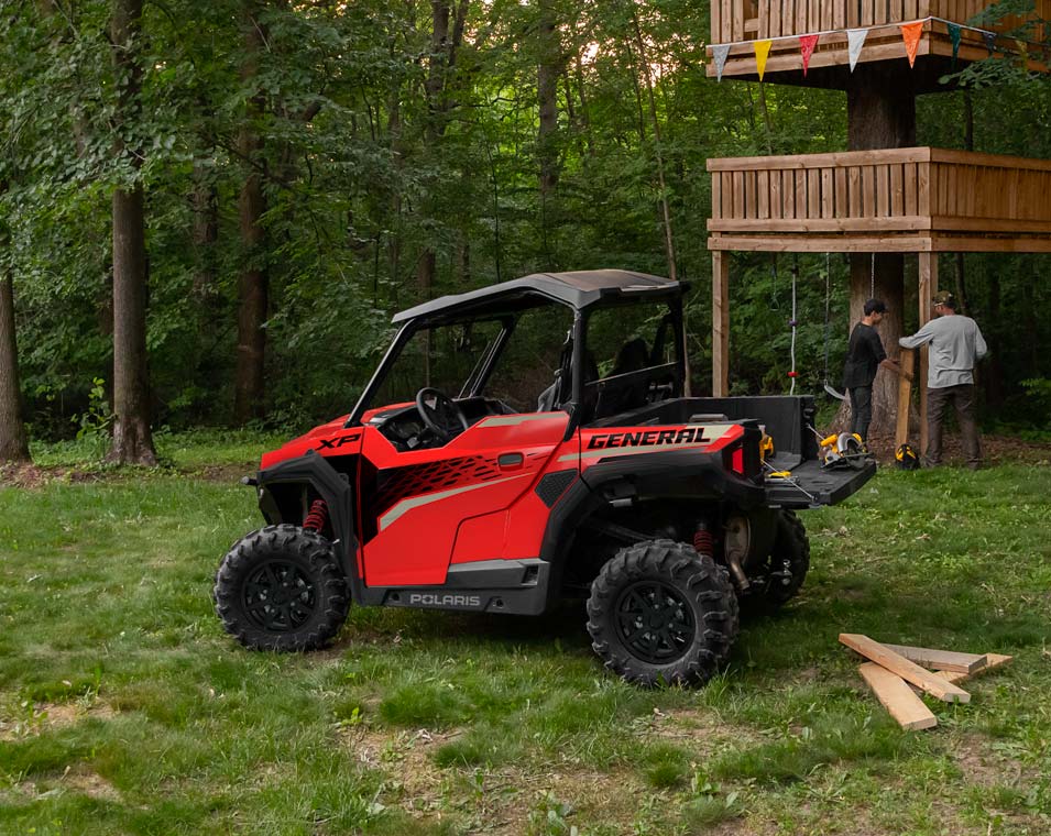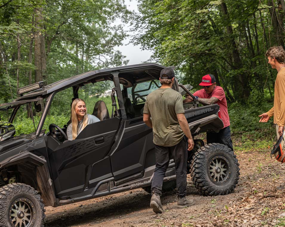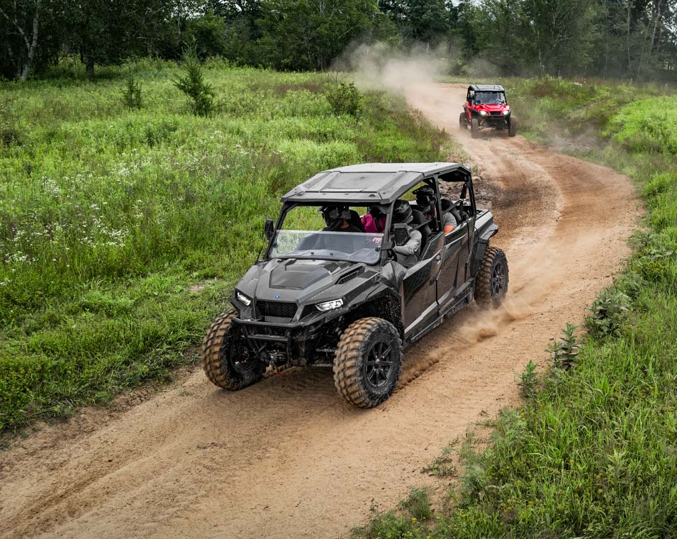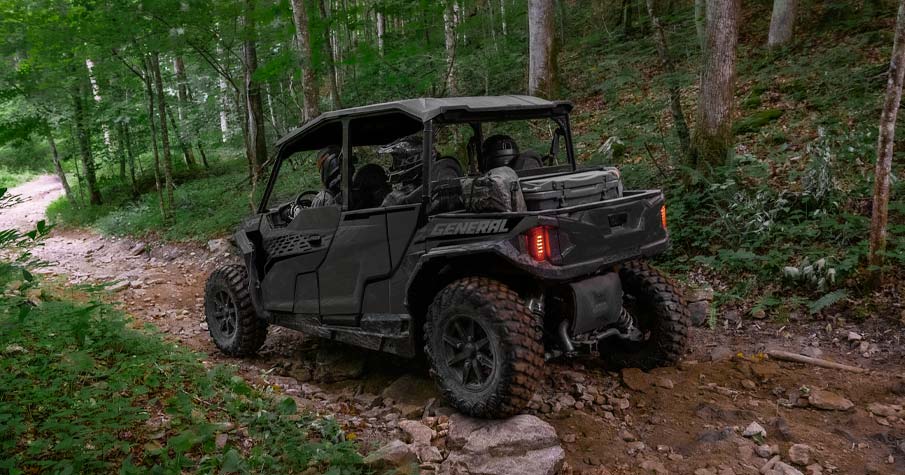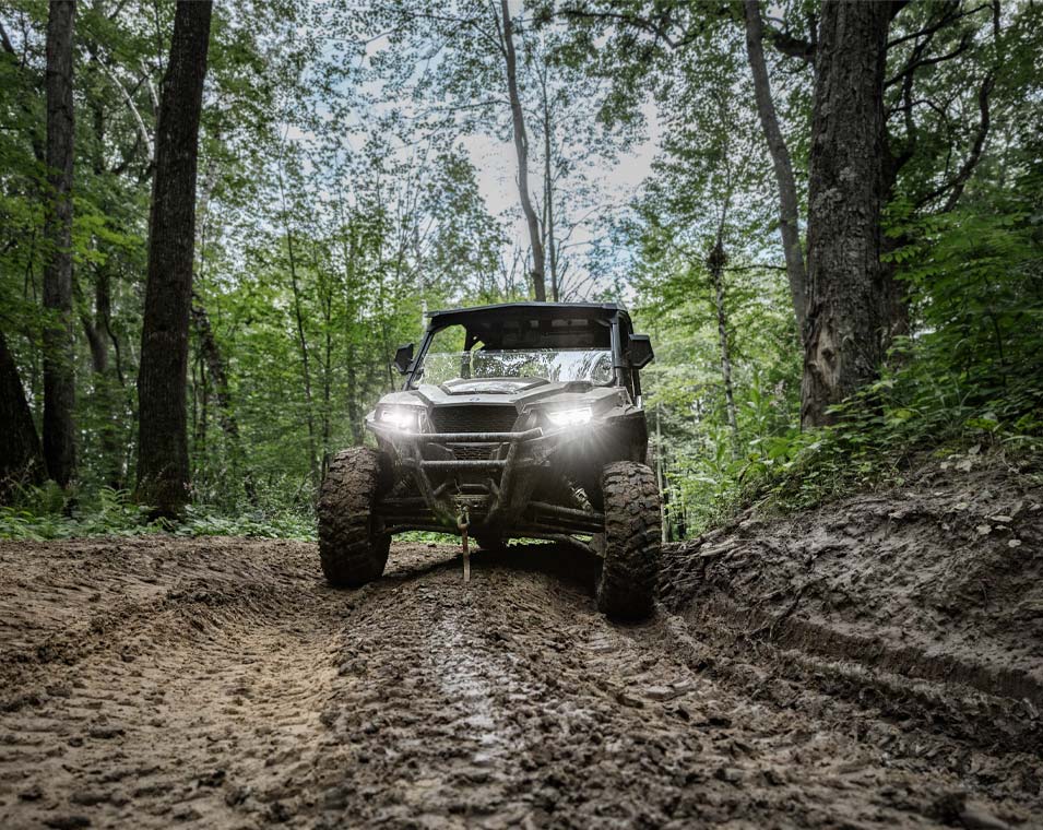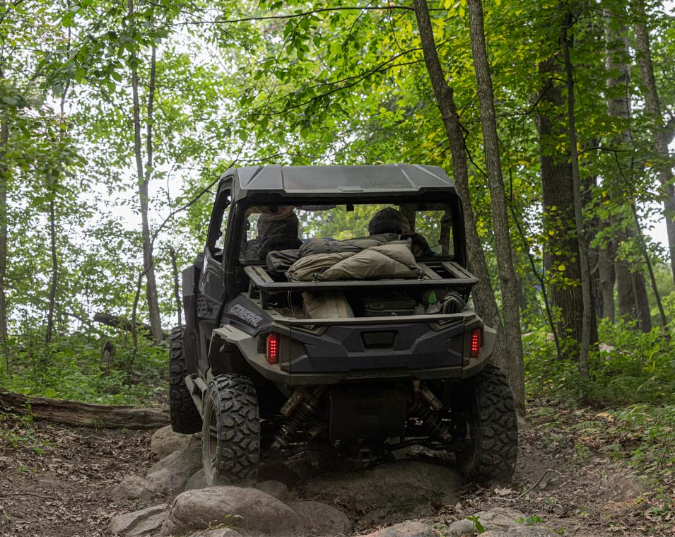 Ao encarar trilhas com o GENERAL XP 1000, você conta com um chassi inspirado em desempenho, motor de 101 CV e tração nas quatro rodas de engate rápido — tudo o que você precisa para dominar qualquer terreno.
